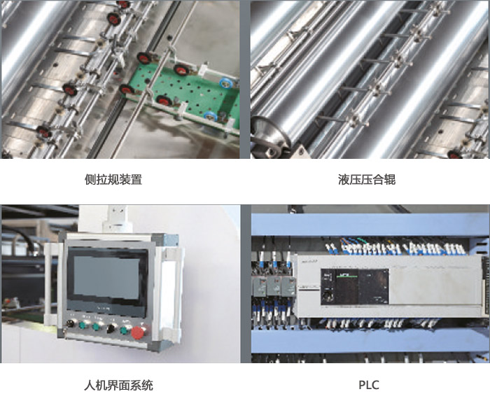 5.壓力輥由自動(dòng)液壓系統(tǒng)控制進(jìn)行壓合,壓力穩(wěn)定,產(chǎn)品貼合牢固、平整、美觀.
